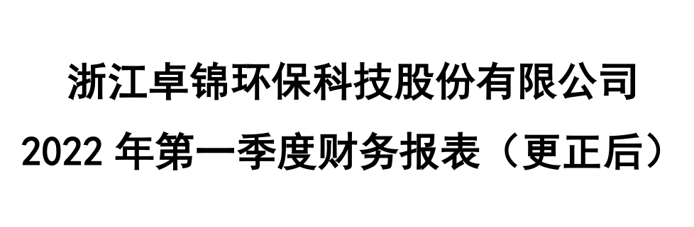 浙江卓錦環保科技股份有限公司2022年第一季度財務報表(更正后)