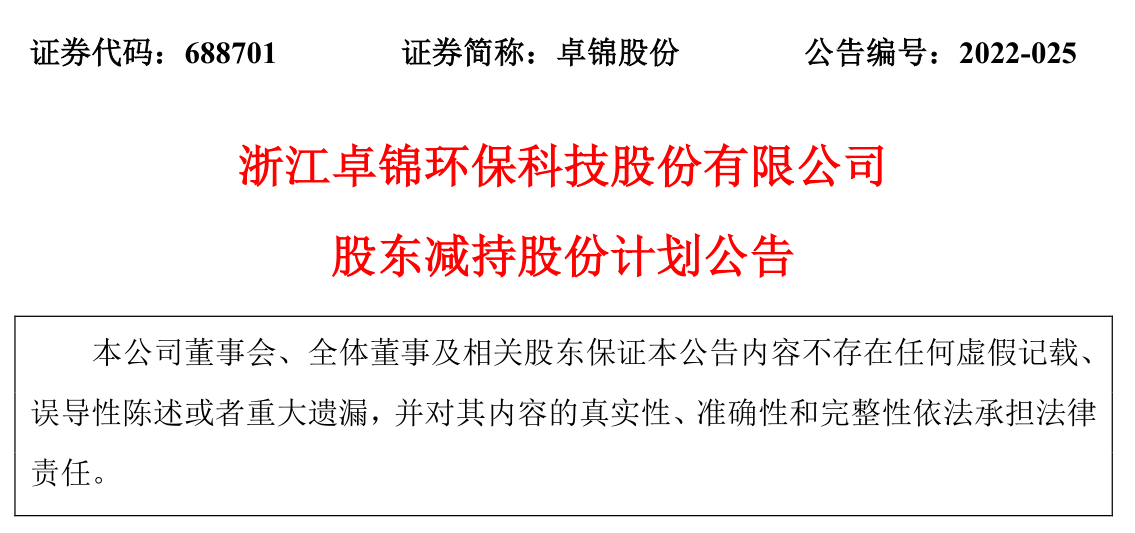 浙江卓錦環(huán)??萍脊煞萦邢薰竟蓶|減持計(jì)劃公告