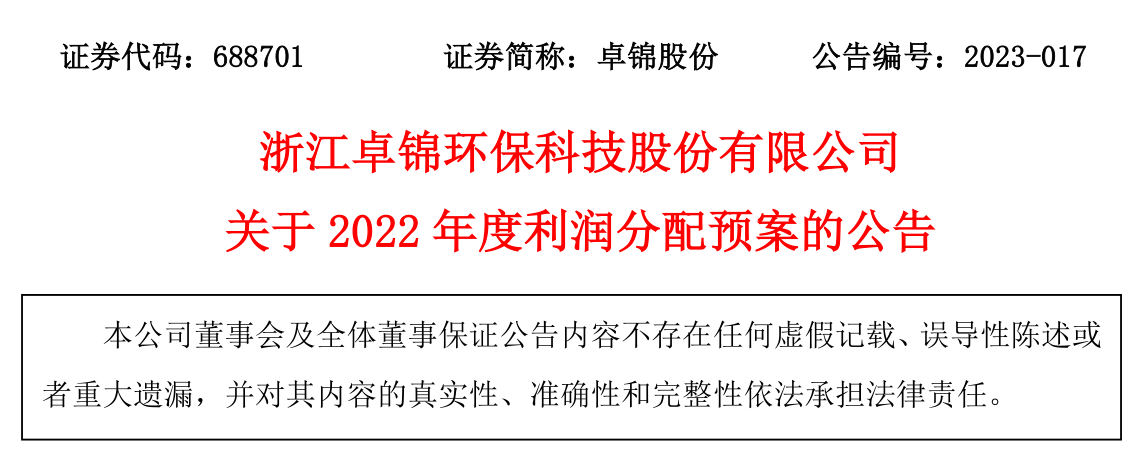 關于2022年度利潤分配預案的公告