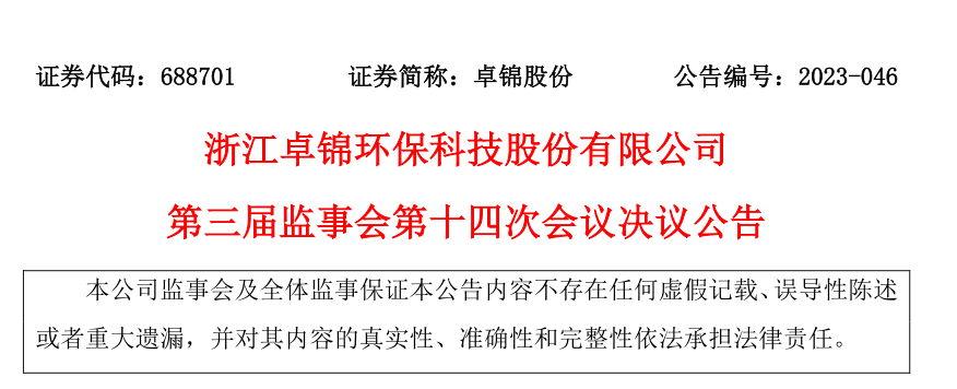 浙江卓錦環??萍脊煞萦邢薰镜谌龑帽O事會第十四次會議決議公告