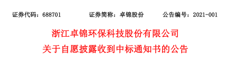 關于自愿披露收到中標通知書的公告