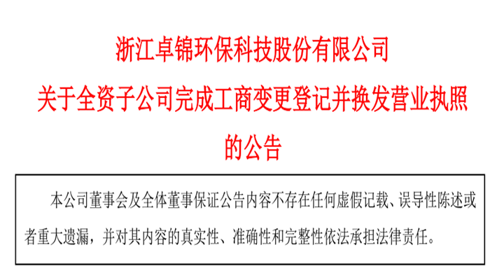 關于全資子公司完成工商變更登記并換發營業執照的公告
