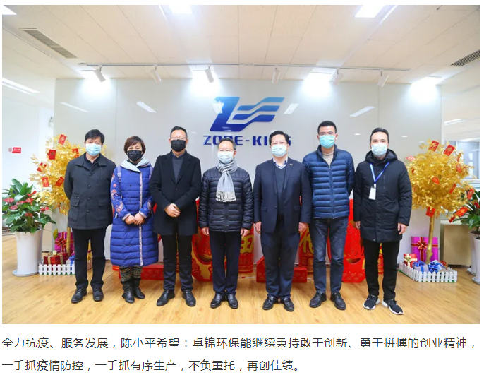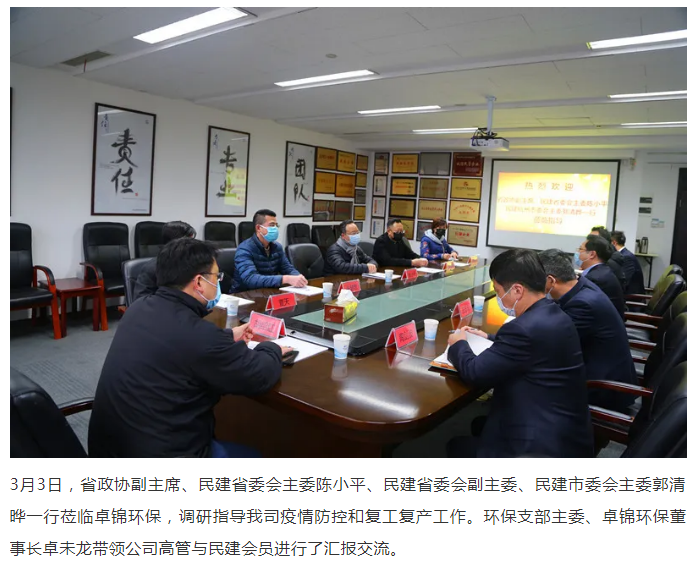 致力抗疫 服務發(fā)展——省政協(xié)副主席、民建省委會主委陳小平、民建省委會副主委、民建市委會主委郭清曄一行走訪調研卓錦環(huán)保
