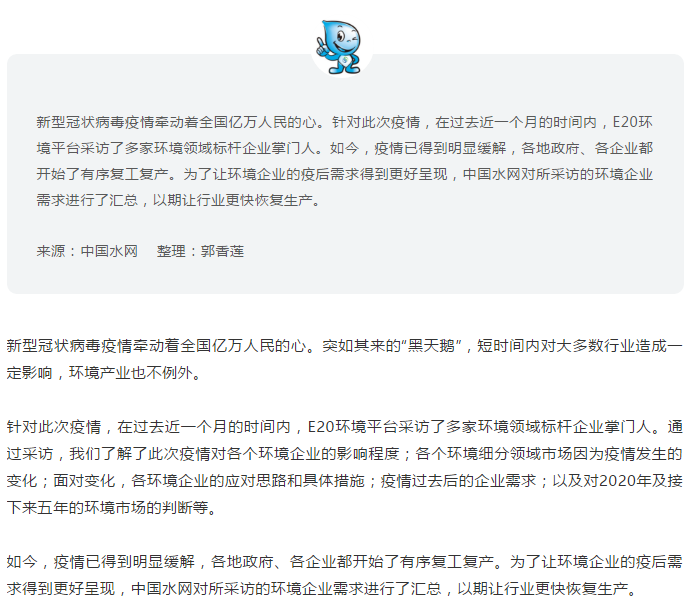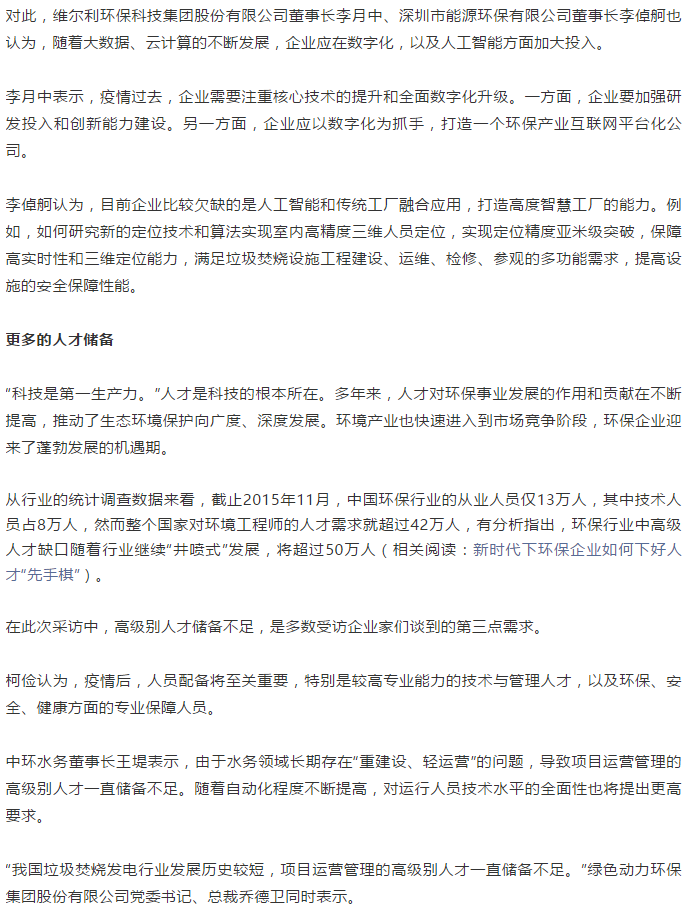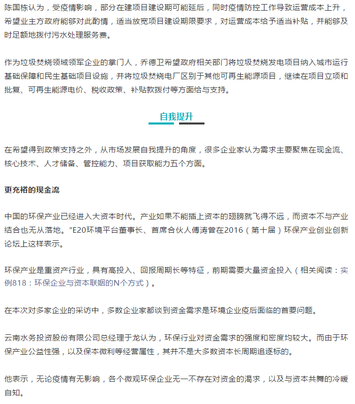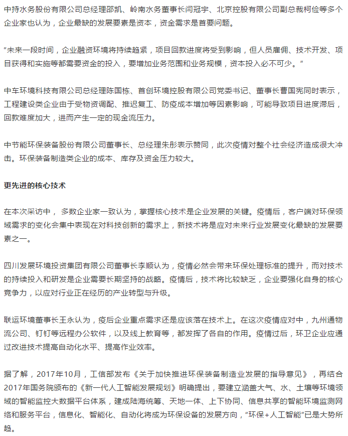 疫情過(guò)后,環(huán)境產(chǎn)業(yè)亟待解決的六大需求