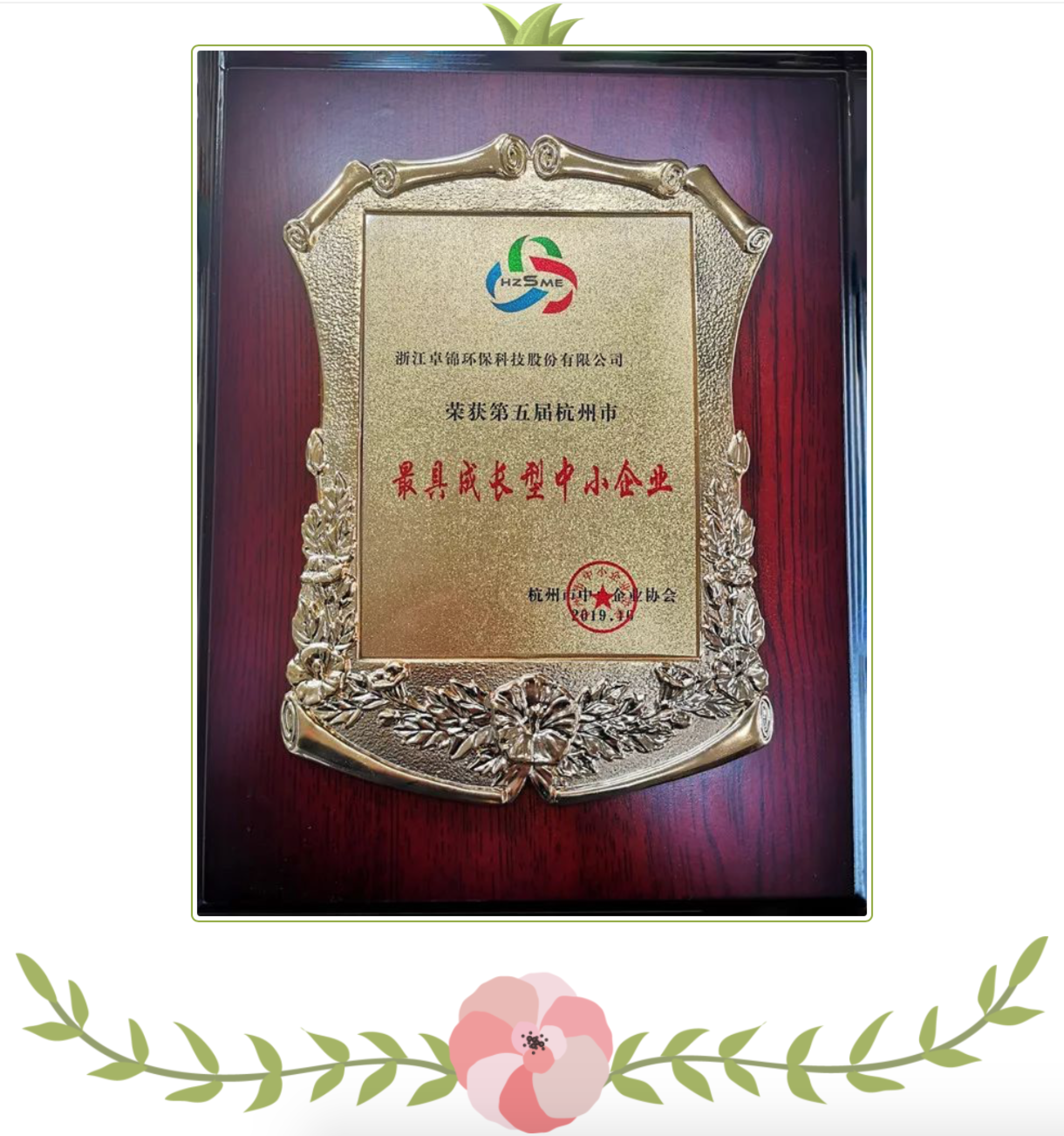 榮譽(yù)丨卓錦環(huán)保榮獲“杭州市最具成長型中小企”稱號(hào)
