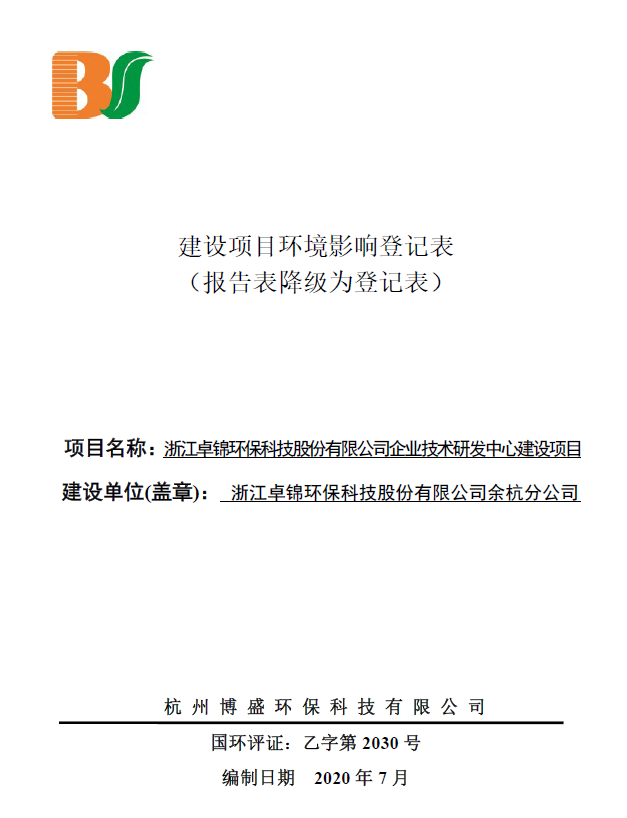 附件:浙江卓錦環(huán)??萍脊煞萦邢薰拘陆ㄆ髽I(yè)技術(shù)研發(fā)中心項(xiàng)目環(huán)境影響評價(jià)報(bào)告