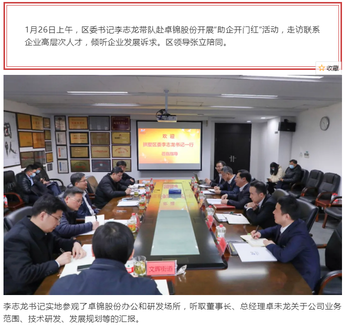 拱墅區(qū)委書記李志龍帶隊赴卓錦股份開展“助企開門紅”活動
