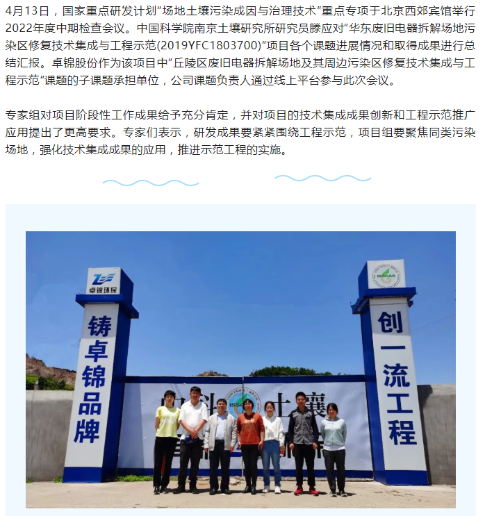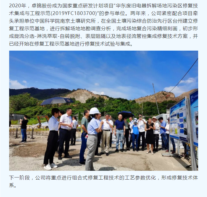 扎根土壤污染綜合防治先行區——卓錦股份參與的國家重點研發計劃課題取得新進展