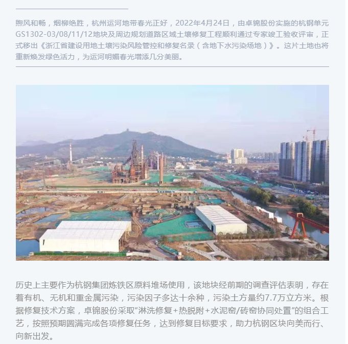 錦上添花|杭鋼單元GS1302-03/08/11/12地塊及周邊規(guī)劃道路區(qū)域土壤修復工程順利完工