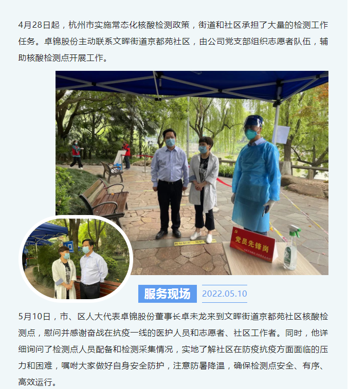 防疫丨卓錦股份積極參與社區(qū)常態(tài)化核酸檢測(cè)工作